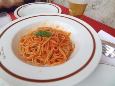 パンテオンのとなりのセミナリオ通りのお店です。ツーリストメニューと看板が出ていたから入りました。11時くらいからやってたかと思います。20ユーロほどで、2人前て感じです。ハウスワインもおいしそうで、中も無難にレストランて感じです。トラットリアていうより、レストランて雰囲気でいいです。