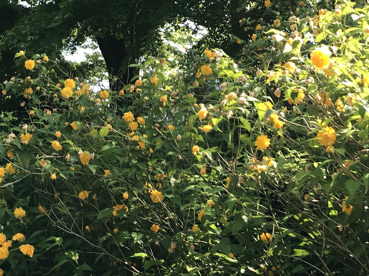 越生の駅近くにある山吹の里は、山吹がたくさん咲いています。太田道灌の故郷の越生で見られる山吹は、