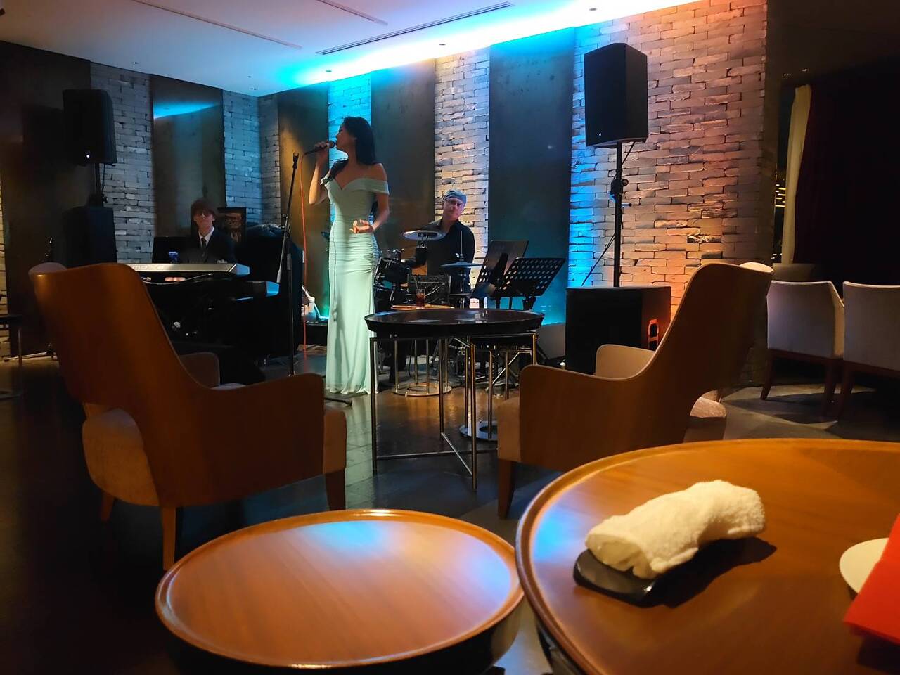 六時頃は座る椅子は海外旅行者でいっぱい、他のレストランもいっぱいと言われました。ポイントでの飲食はできないようです。七時過ぎなら座る席があったので、入ると8時から土曜日はライブがありました。- 旅行時期