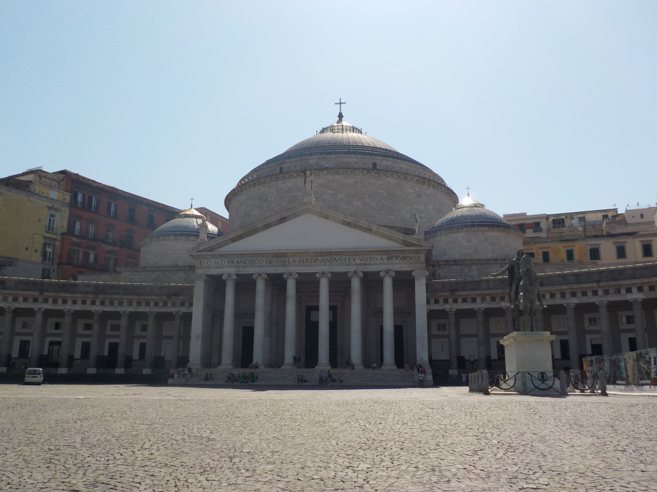 フランチェスコ ディパオラ 大聖堂とブルボンの家、すなわち王宮があります。イタリア統一のときにできたかというナポリに来たらここに行かなきゃの場所で、正面向かって右に行くとキアイッア、左の方は海沿いの道出ます。右のほうにタクシー乗り場がありました。そこからクルーズポートまではほんとは、5ユーロくらいなのにはじめに10ユーロといってくれて、まあ10ユーロ払いました。