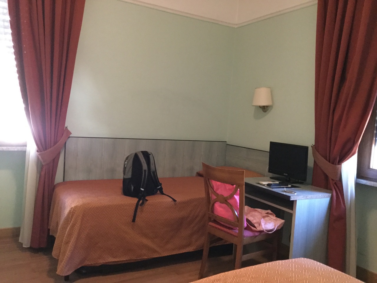 ツアーで初めてここだったので、2回目のローマも安いのにきれいなのでここに決まり。テルミニ駅は治安が悪いと言われるので、今回は、メトロは乗らずタクシーでホテルからドアトゥドアで行きました。トレビの泉まで10ユーロです。タクシーは呼んでもらえます。もちろんイタリアのホテルは、イタリアのウォシュレットビデもついています。