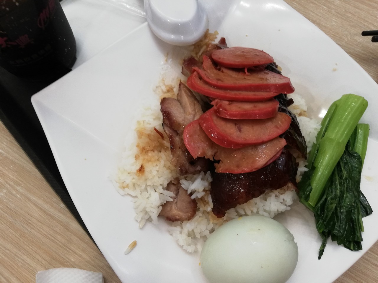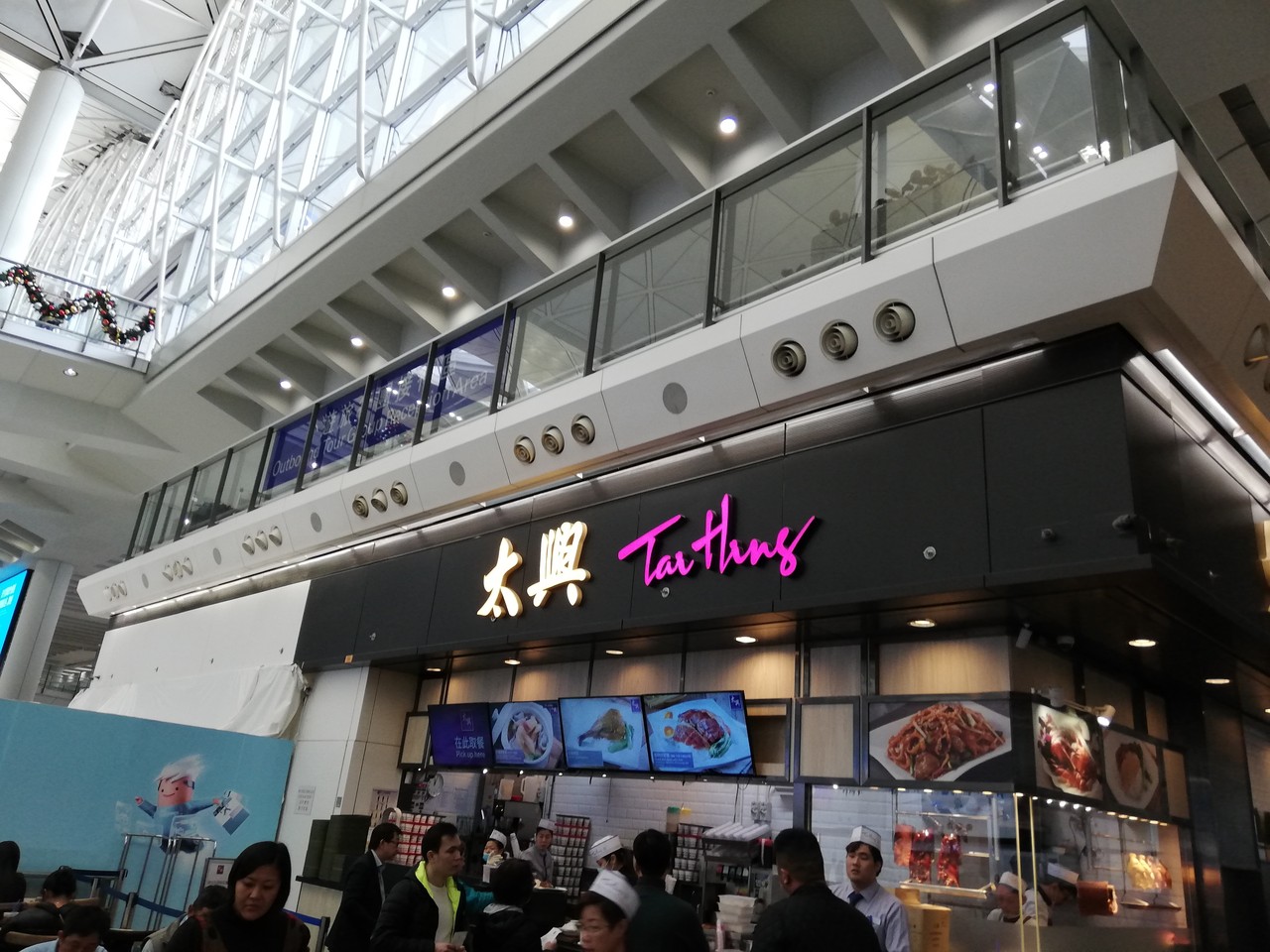 空港から出てすぐにある香港ぽい店ということで飛びついてチキンライスを頼みました。肉厚で脂ものっておいしい部分もありますが、はっきり言って味が合わず、マジいかな。でも、周りの中国人たちはうまそうにパクパク食べていました。紹興酒っぽい味なのかな。麺類は美味しかったです。