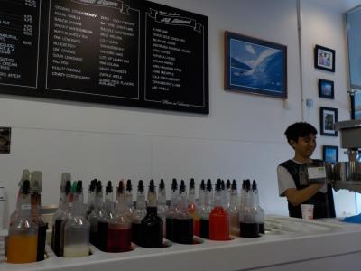 カイルアに行きたい理由がこのアイランドスノー。昨年末にオバマ大統領が車列を組んでわざわざこの店にかき氷を食べにきました。お気に入りの3種のシロップは