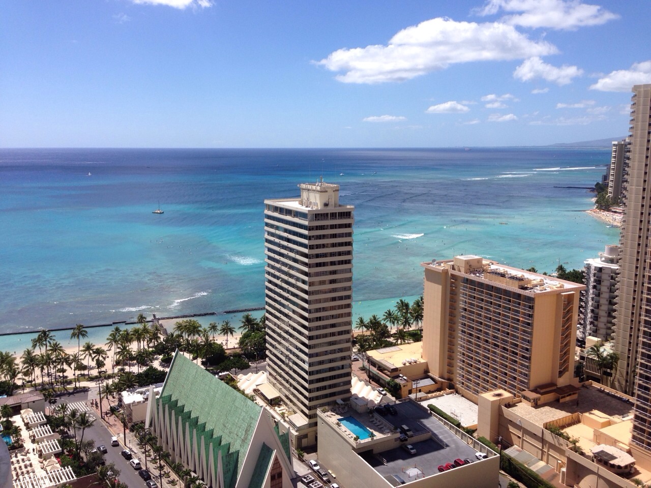 3月13日から家族4人で4泊利用。ブッキング会社のネットを通じて予約したのですが、チェックイン時に予約した部屋は大人4人対応の部屋では無いというこで、部屋をその場で取り直してもらいました。部屋はグレードアップしたので仕方ないことですが、差額分30ドル×日数を払うことに…。対応してくれたフロントの方は良い部屋だから、グレードアップして良かったよ!と言ってましたが、もともとの部屋がどんなのか分からないので、何とも言えません;ただ、31階で眺めは良く、角部屋でラナイが二カ所あり、海と山側両方見えて良かったです。