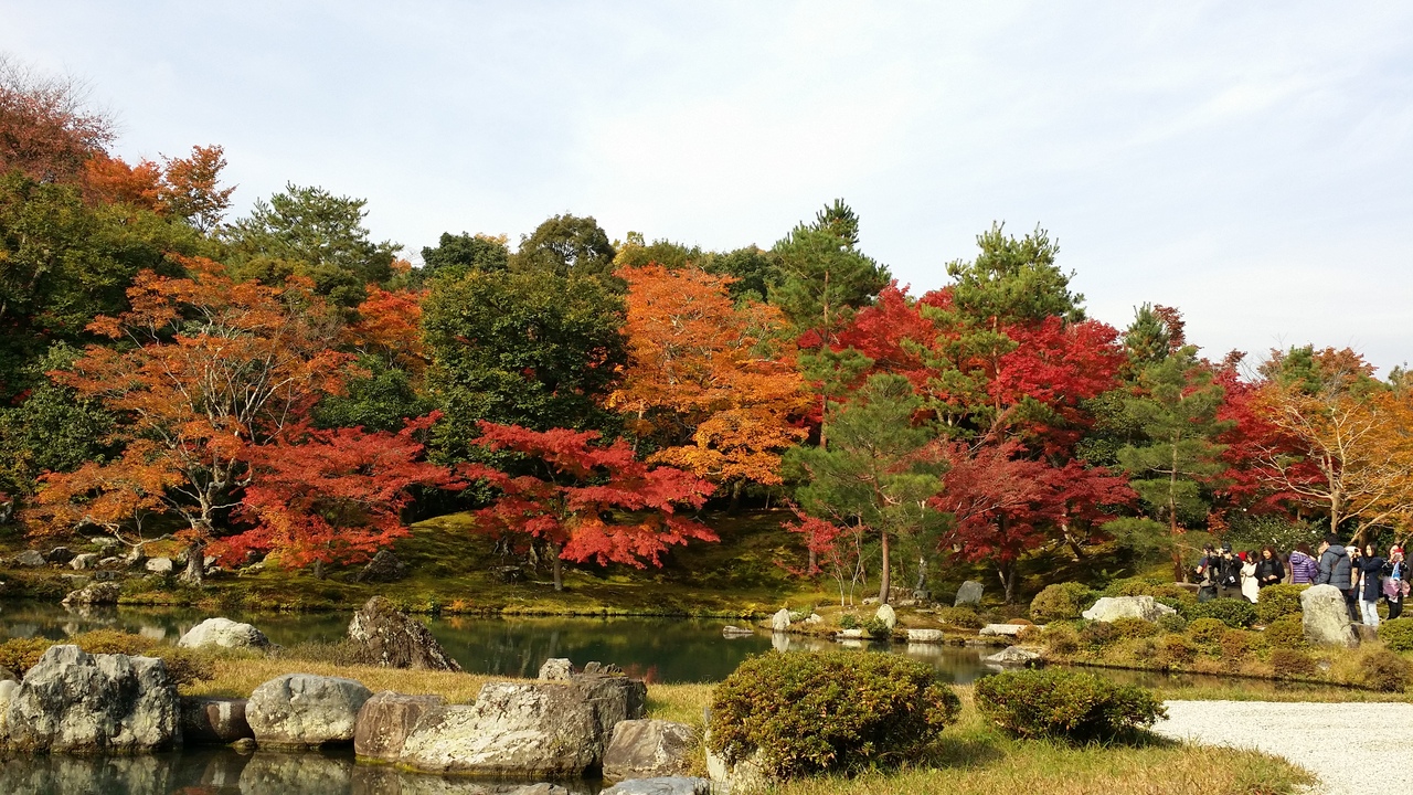 11月初旬に訪れました。車椅子の祖父を連れての観光で行けるところが限られていましたが、少し色づいた紅葉のお庭が嵐山の借景と相まって綺麗でした。また天井に八方睨みの竜が描かれている龍雲図があるお堂があってお寺のスタッフさん達が祖父を車椅子ごとあげて下さったのには感動しました。団体向けの談話を聞くこともできました。また竜の躍動感も素晴らしかったです。やはり季節がら観光客が多く混雑していました。駐車場が1000円で特に時間制限されていなかったので、車を停めたまま天龍寺周辺嵐山をまわれたのがよかったです。