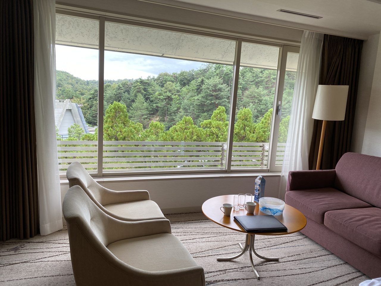 窓から宝ヶ池公園の緑が臨め、癒されます。