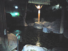 露天の方も、掛け流しになっているがごみ取りの為循環装置も併用しているようで、こちらの湯船には湯の花が浴槽の中には無かった。また内風呂では硫化水素臭が漂っていたが、露天だと発散してしまったのが、あまり感じられなかったのが残念