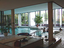チューリッヒ空港の地下駅からバーゼル行きのICで約25分。バーデン駅から徒歩10分にある温泉プール「ThermalBaden」は長い飛行機での疲れを癒してくれます。