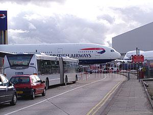 ロンドン、ヒースロー空港には、「飛行機の踏切」があります。