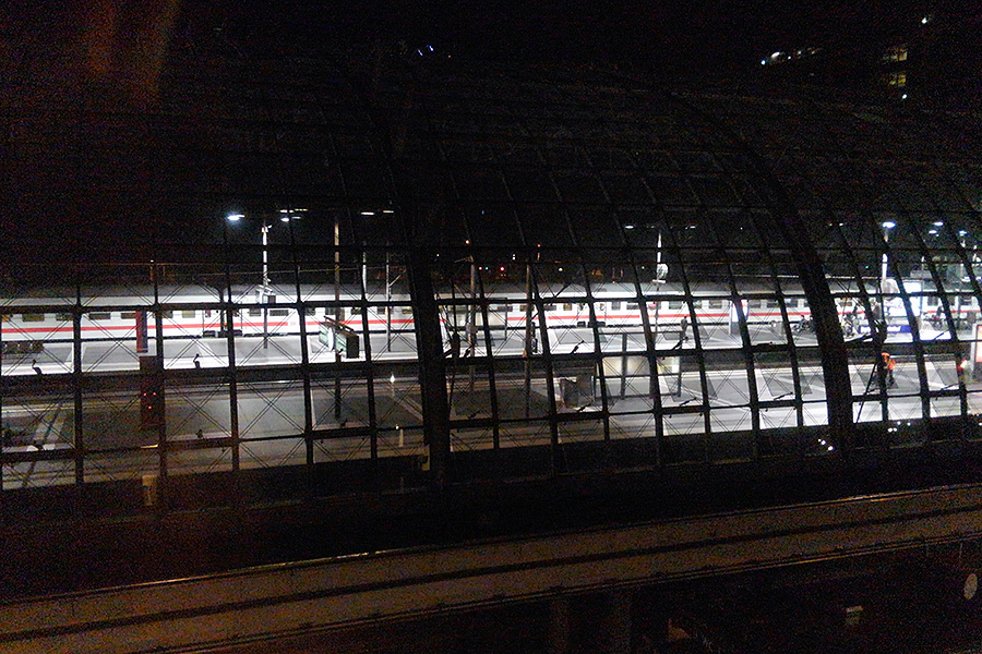 宿泊した部屋からはベルリン中央駅の高架ホームが眺められ、ICEなどの行き交う列車を眺めていると海外に来ている気分が高まります。