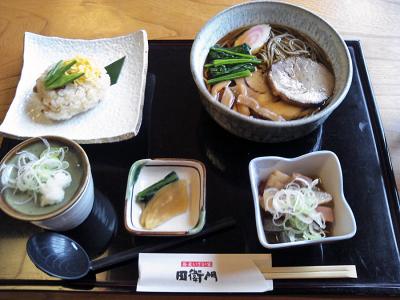 蕎麦と郷土料理がメインのお店で、「トン蕎麦」なるの物が名物?と言うことで、そのトン蕎麦定食を注文してみました。まあ、ちょっと濃い目のそばつゆにチャーシューが乗っている、いわば中華麺風にアレンジしたものでした。