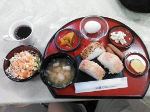 まあ、よくある朝食ですね。和洋食で一応前夜にメニューがロビーのエレベーターのりば近くに張り出されています。