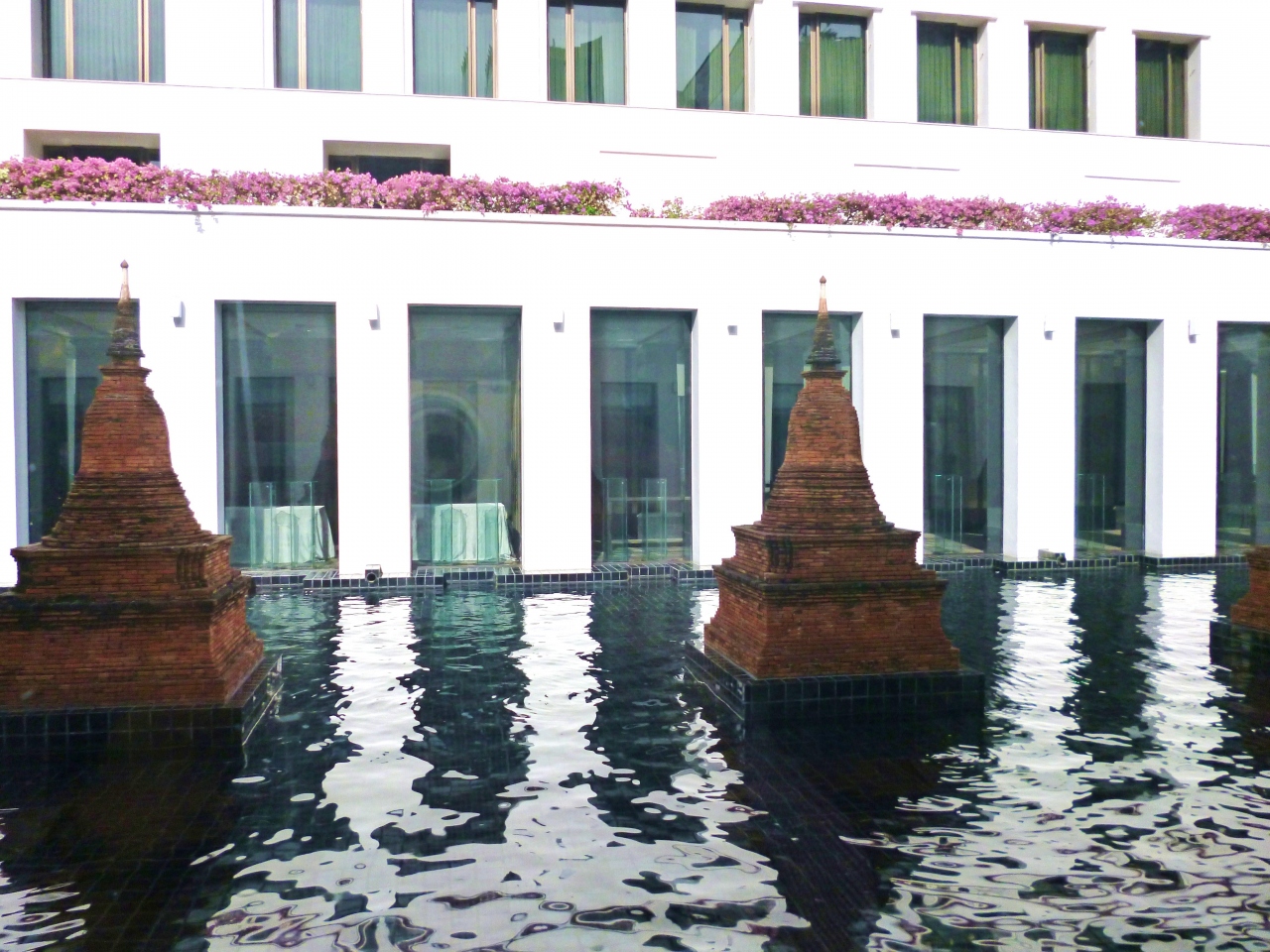間接照明と彫像やタイシルクが効果的に使われ、随所にタイらしさを感じるホテルです。