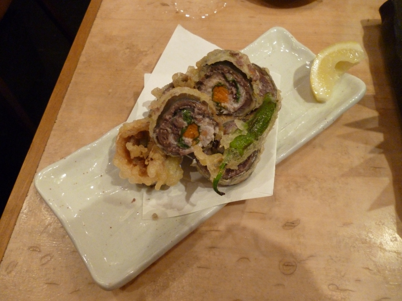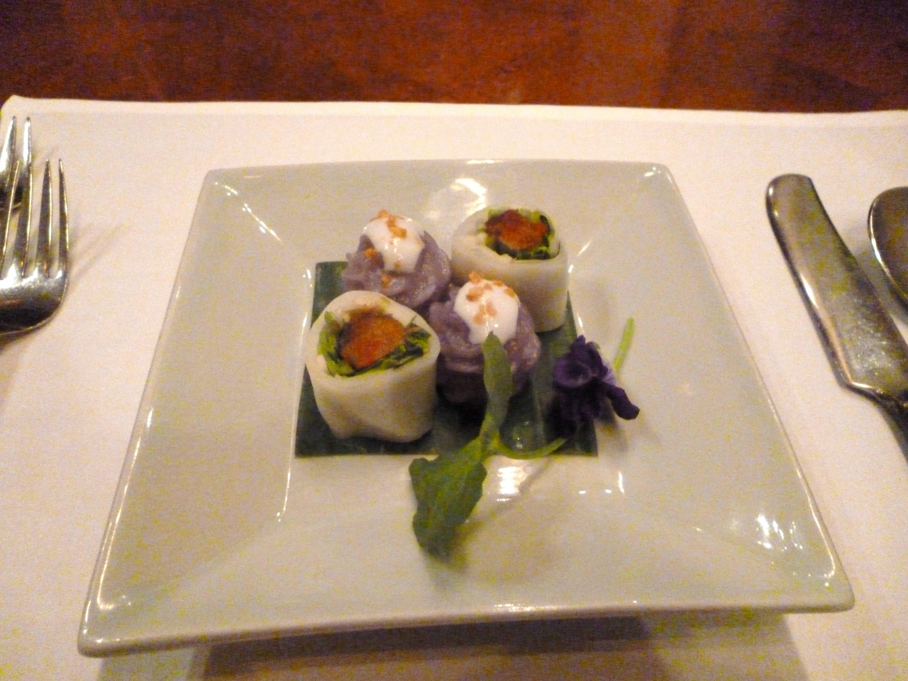☆牛肉のフィレ、ソフトシェルクラブ、野菜の三種