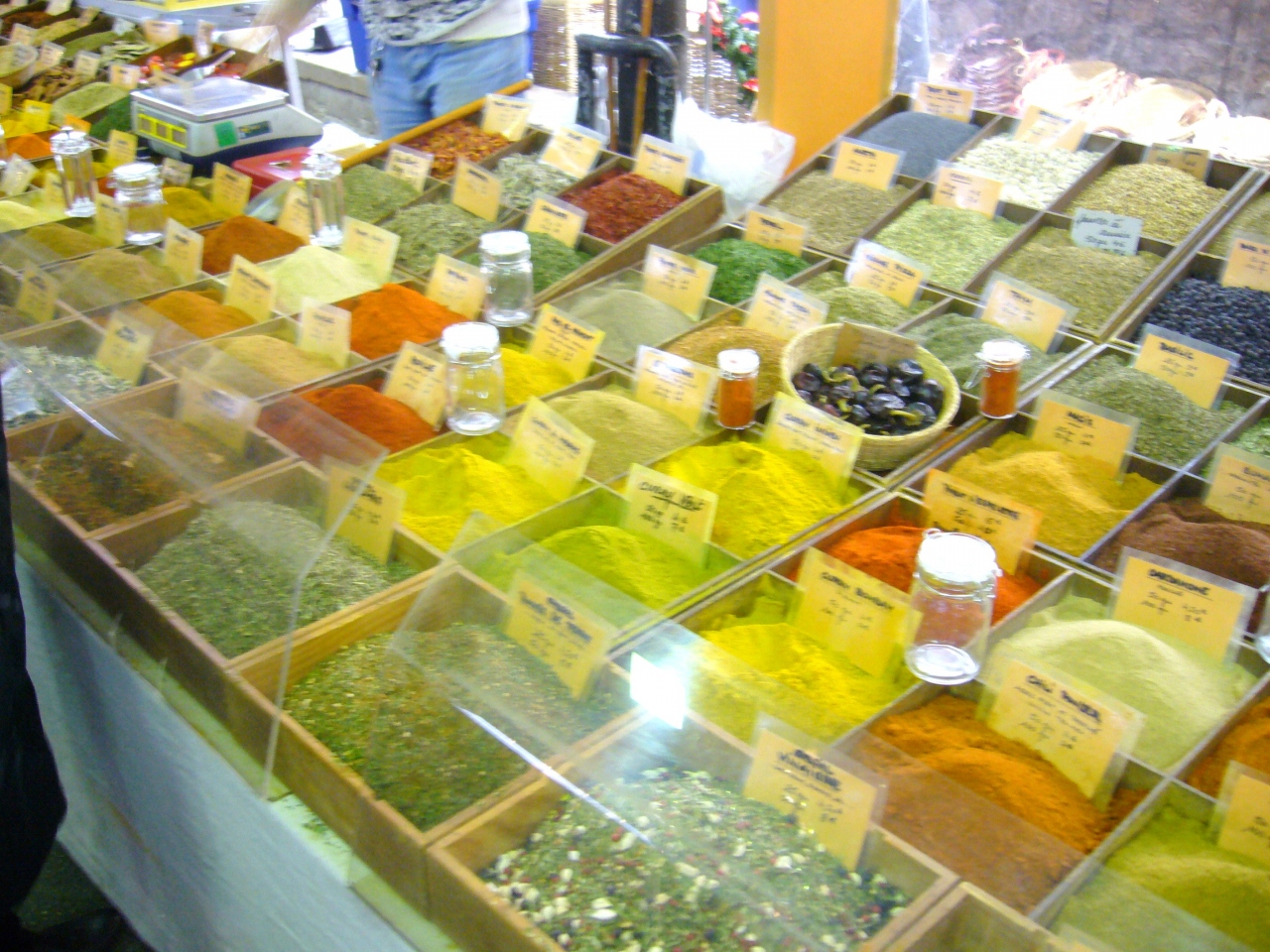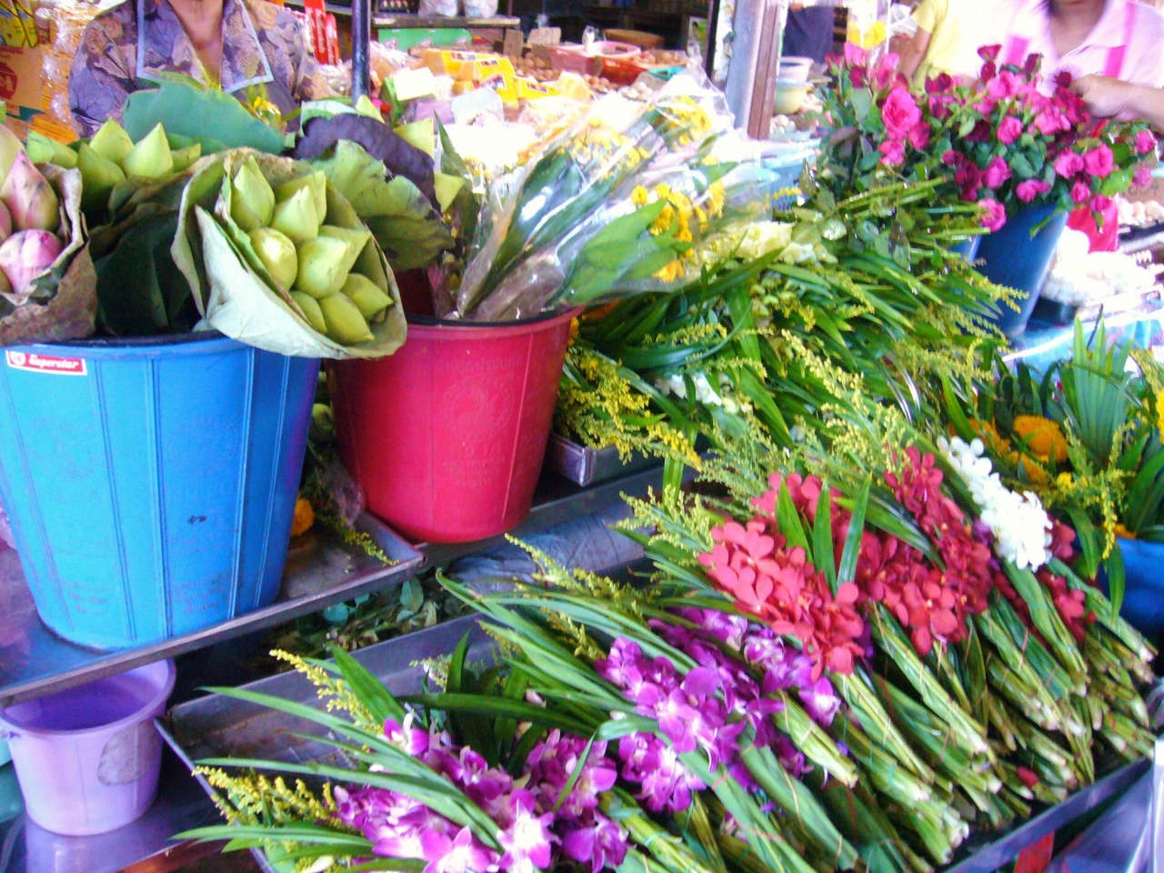 市場には、野菜、果物、肉、魚、日用品などなんでもあります。