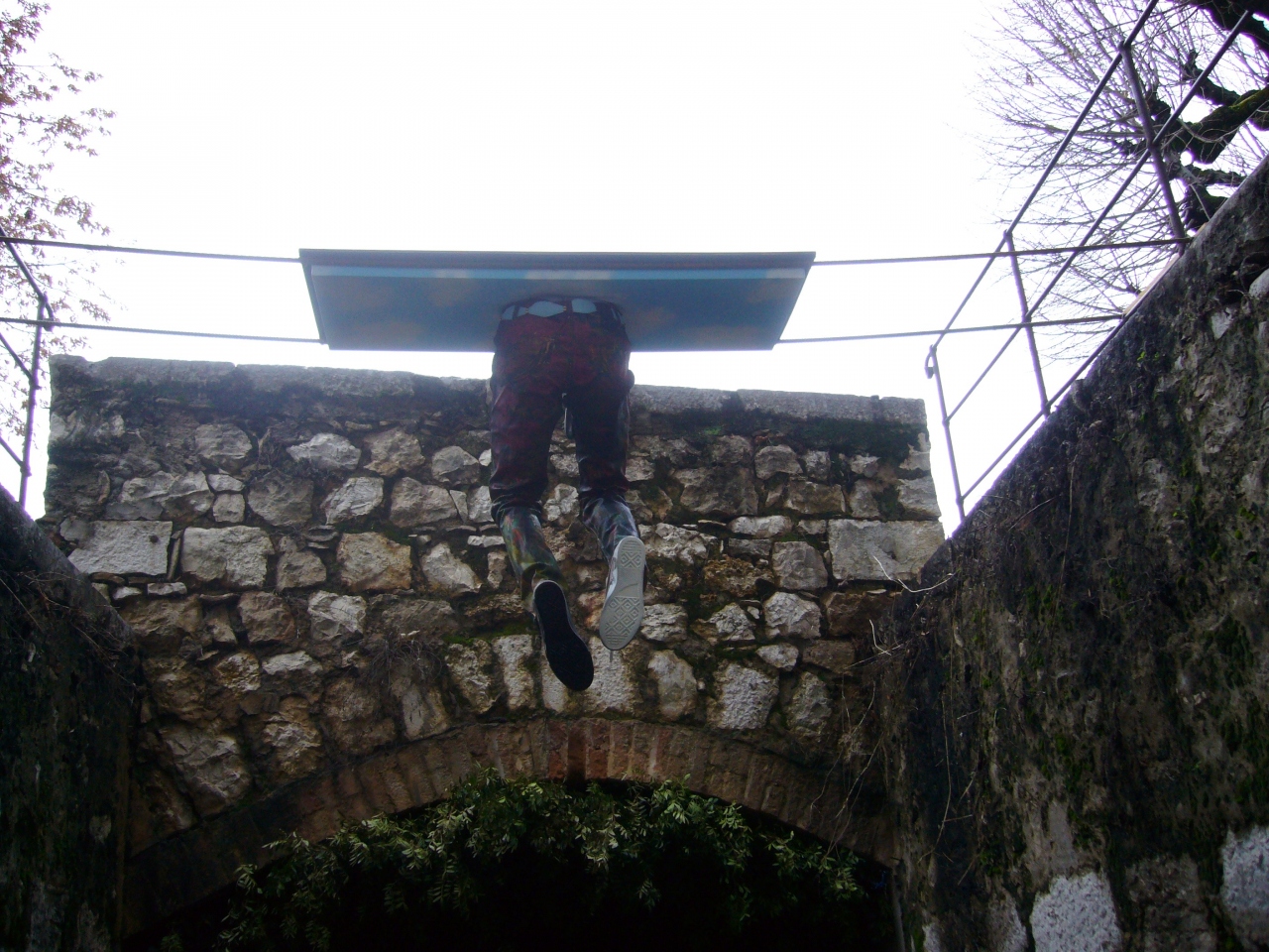 みなさん、恐る恐る降りて行く。。。持ち手を握り一段一段降りました。