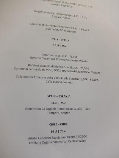 テーブルワインが120円くらいでとてもリーズナブルです。