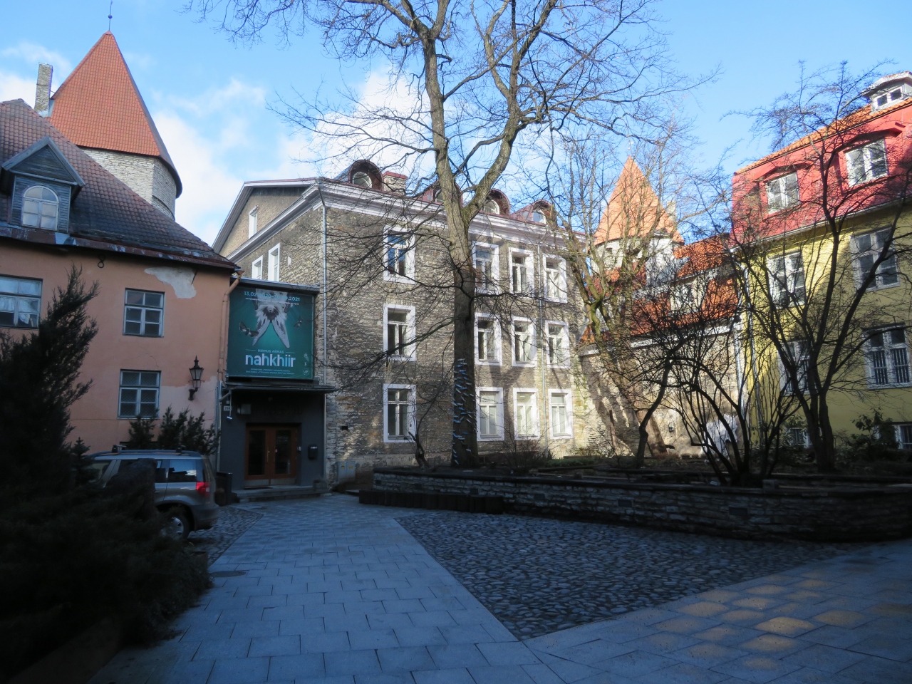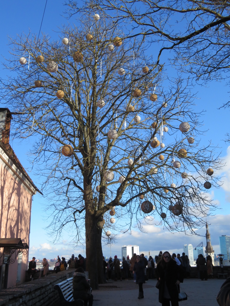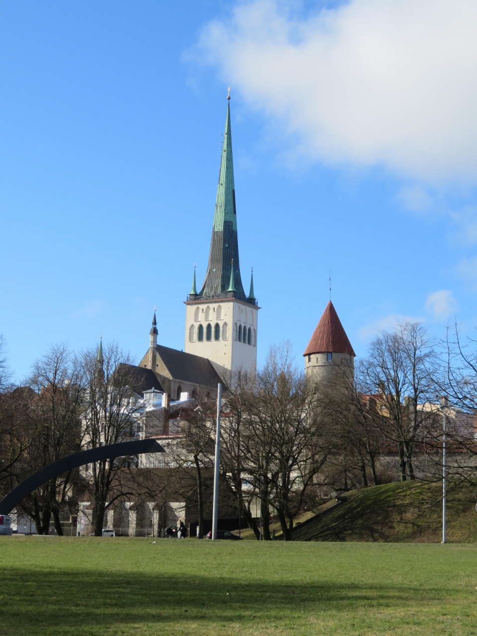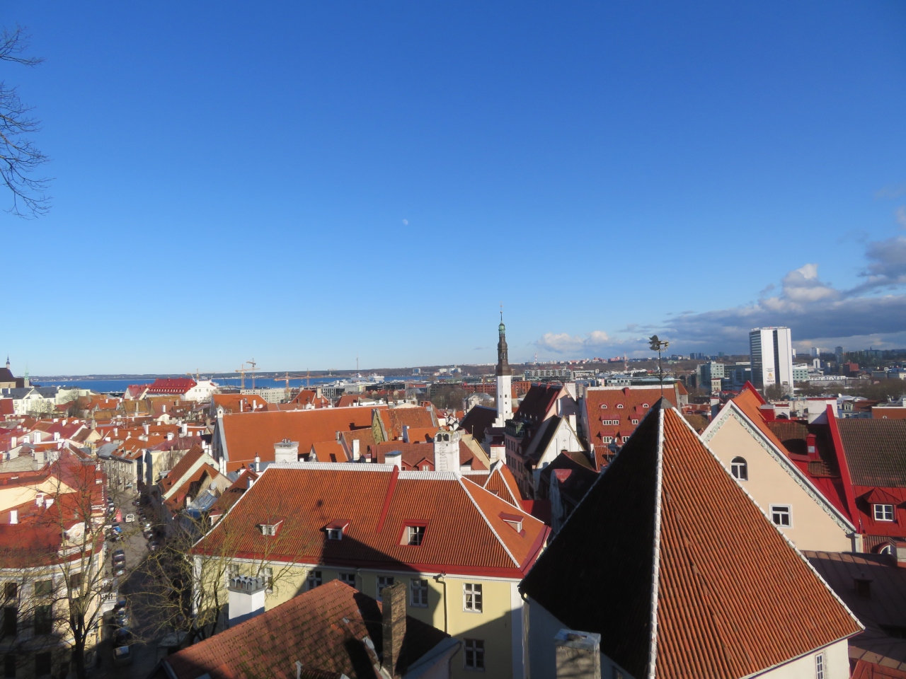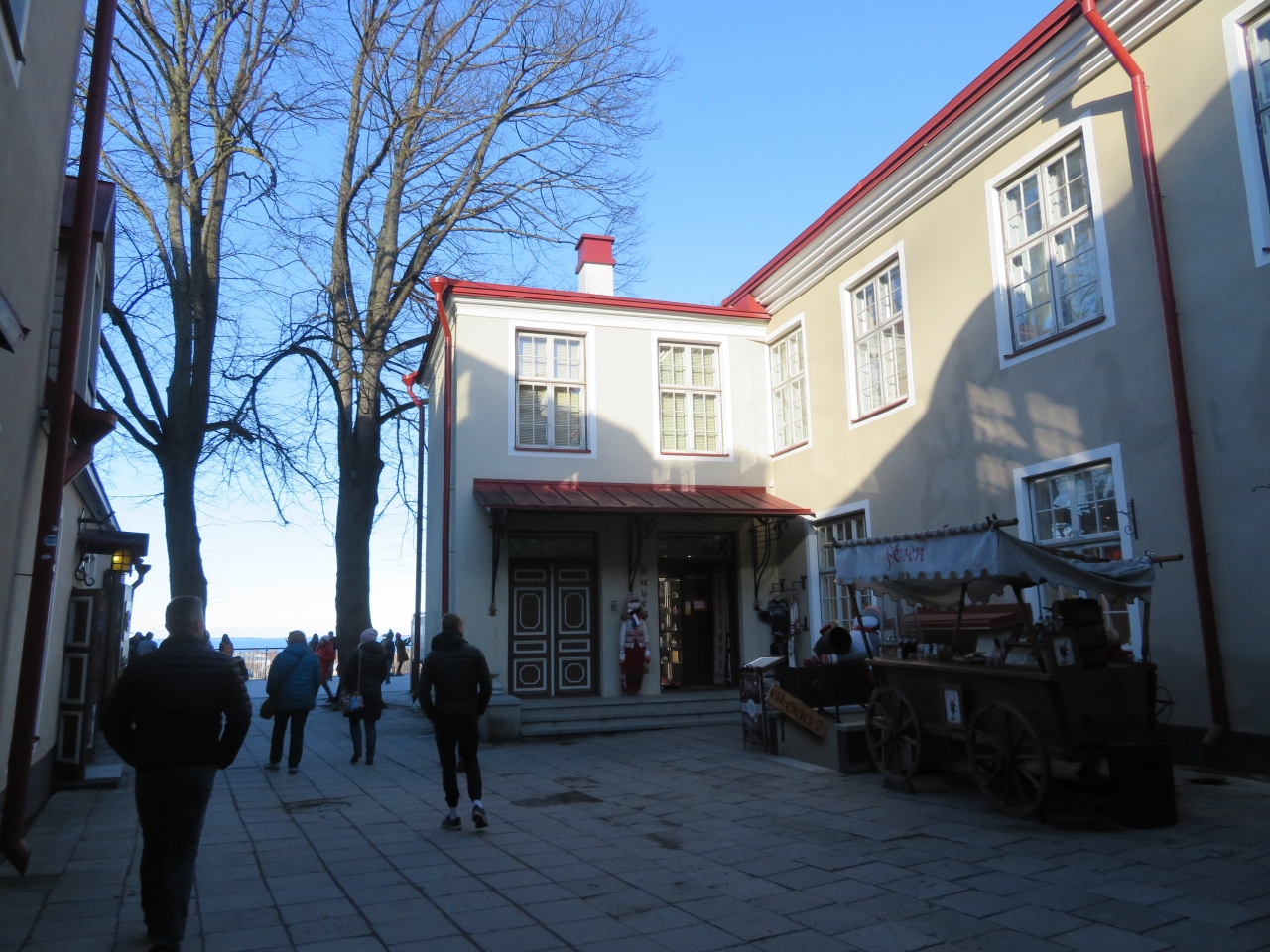 少しトームペア城から小道を進んだ先にあります。訪れたのは3月ですが、観光客がその方角に向かうのが分かり、迷子にはなりませんでした。両端に土産物店があります。手前に旧市街、奥にモダンな高層ビルが見え、アンバランスな美しさです。
