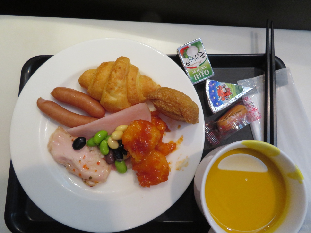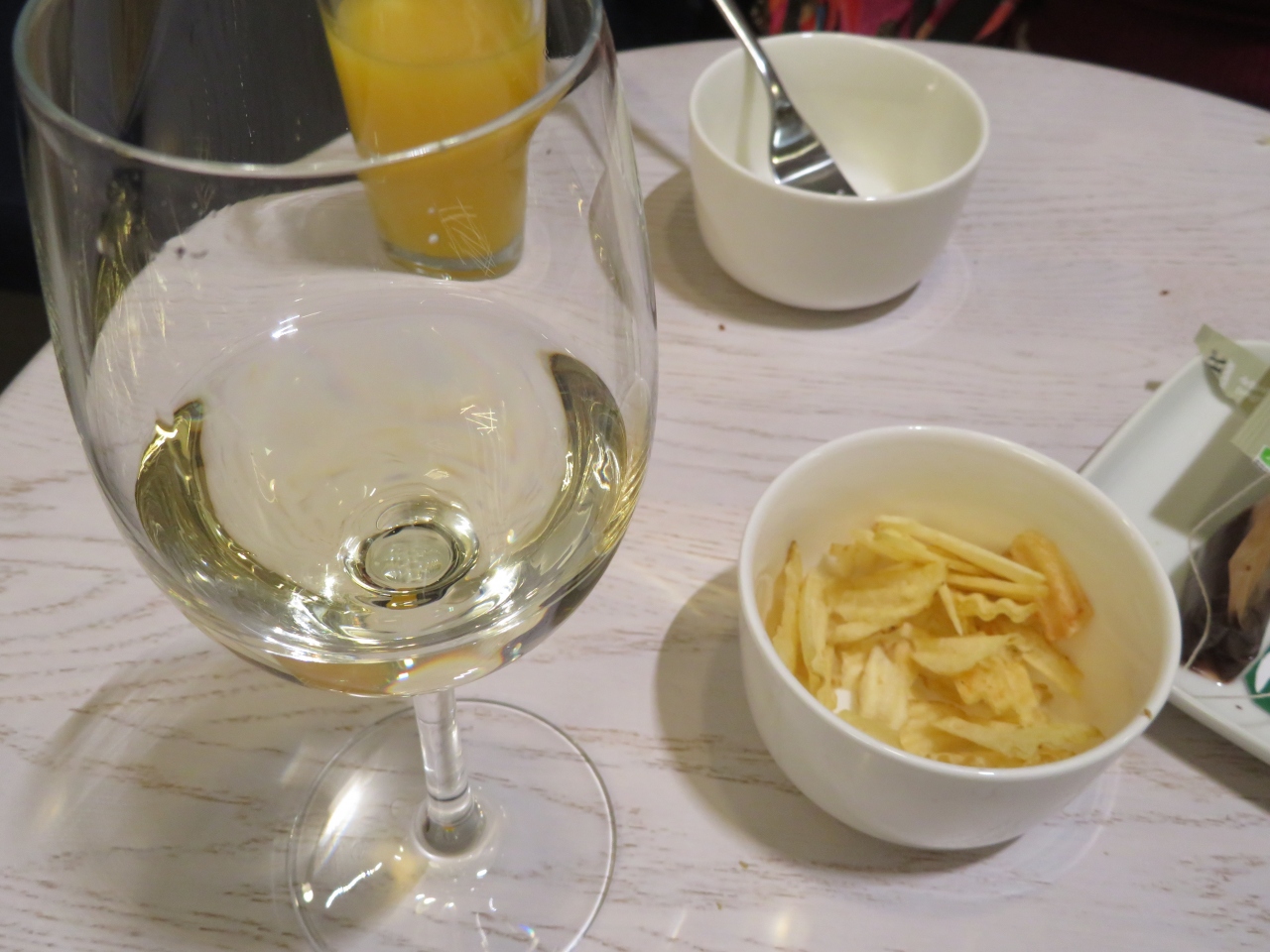 関西国際空港のラウンジ、飛鳥よりは食事のメニューが少なかったです。春巻きとシュウマイ、フルーツとポテチ、クッキーくらいでした。でも飲み物は充実していて、ワインもいただくことができました。52ゲート近くにあり、シャワーも無料で利用できるようでした。トイレもラウンジ内にありました。