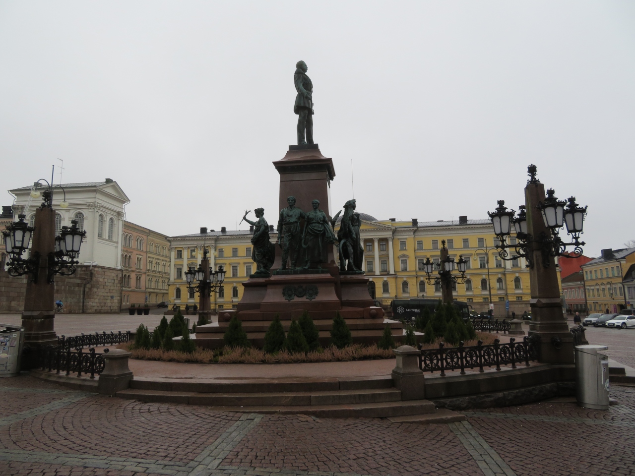 ヘルシンキ大聖堂の正面にあるため、大聖堂の撮影にぴったりです。アレクサンドル2世像があり、観光客の集合場所にもなっているようでした。マーケット広場にも近く、繁華街にも近いので、ツアーバスがよく止まっていました。