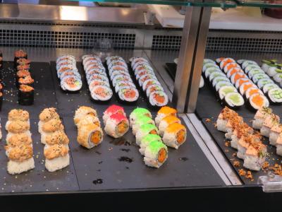 ヘルシンキ中央駅やフォーラムと地下道で連結されていました。迷子の末たどり着き、24時間開いているスーパーを利用しました。ムーミンの菓子類がムーミンショップよりも安く購入できました。小さな飲食スペースがあったので、「現地の寿司」をいただきました。
