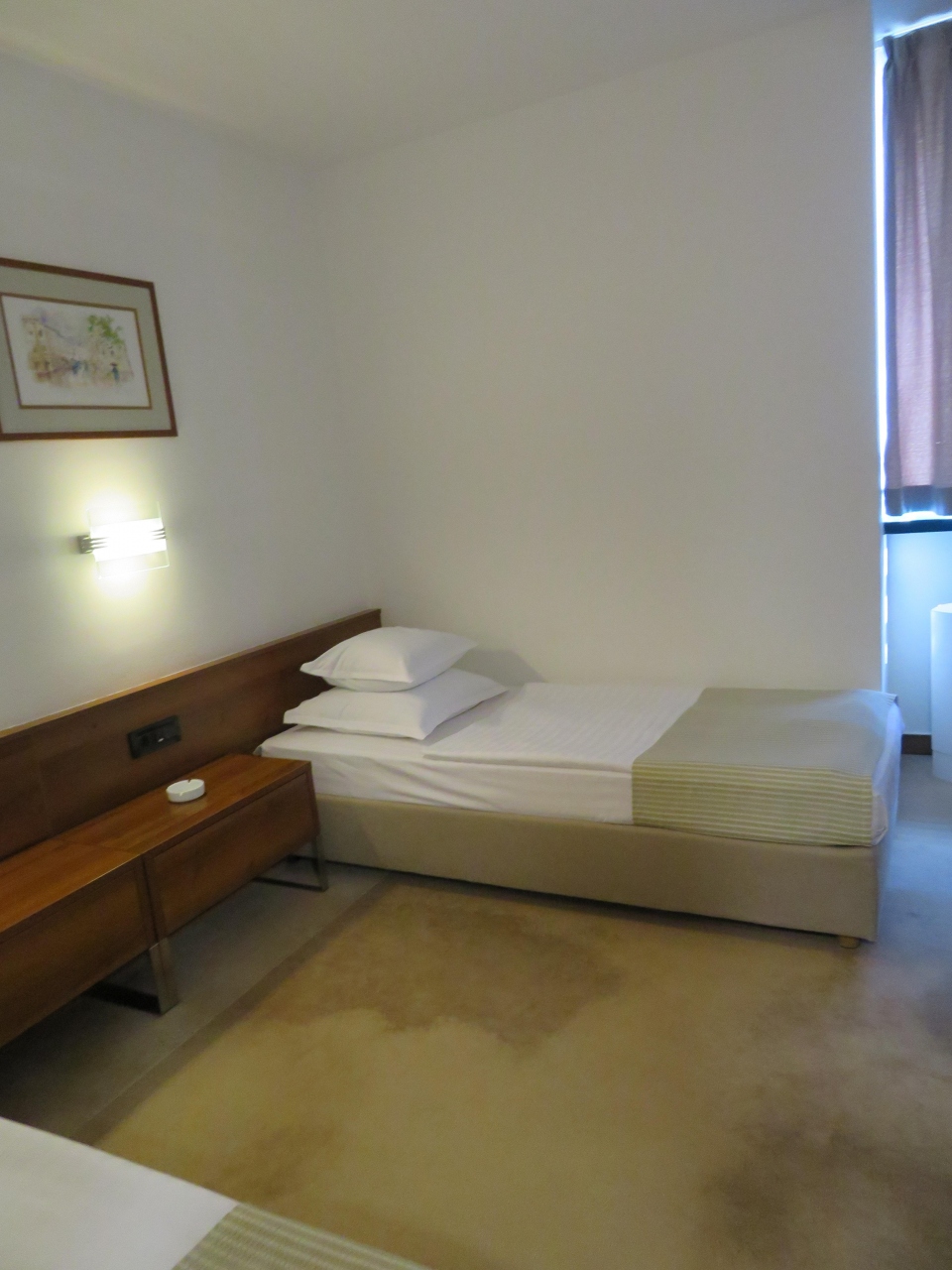 旧市街からも、バスターミナルからも離れている地域lapadaに位置します。(バスは6番を利用)ホテルそのものは都市型で設備は整っていますが、客室は狭いです。クーラー、冷蔵庫、テレビもあり、wifiも速く、ストレスなく利用できます。歩行者専用道路がホテル前に通っており、サンセットビーチまで近く、海水浴も楽しめますし、レストランも多いです。ただ、朝食のサービスが午前7時から、と遅めです。朝食は新鮮な野菜はありませんが果物が多かったです。(ドブロブニクの多くの観光施設が8時に始まること、バスの来る時間も読めないことも考えると)