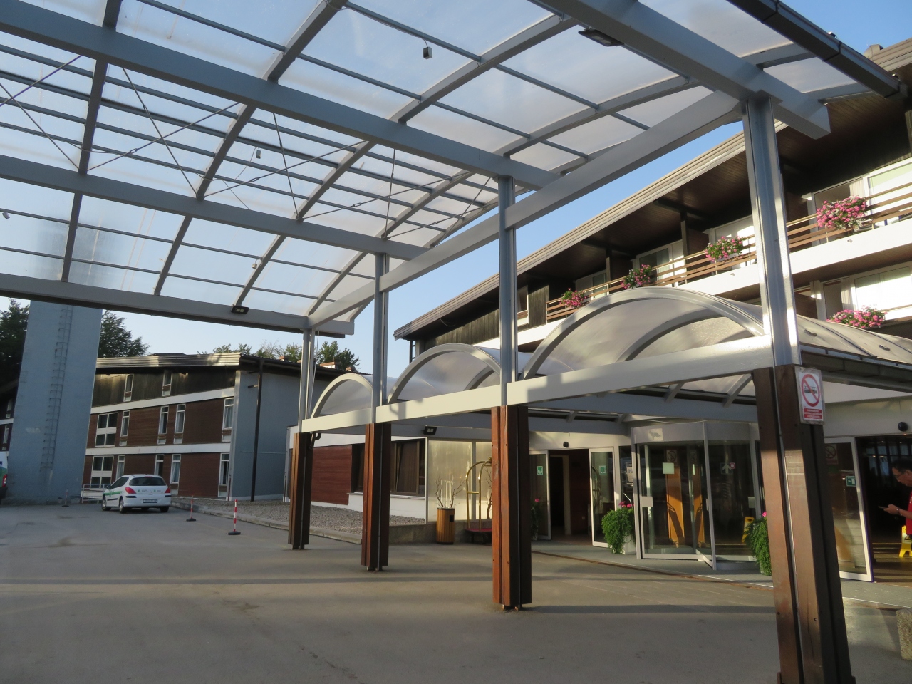 プリトビチェ国立公園の入り口2の近くにあります。長時間国立公園で過ごしたい人、朝1番に湖を独り占めしたい人には最適です。クーラーはありませんが、朝夕は外気温が低めです。電気を消して(虫が室内に入るので)窓を開けるといいとホテルで伺いました。冷蔵庫とテレビがあります。ただ、wifi環境はいまいちで、つながりにくいです。朝食は新鮮な野菜は少なめですが、パイなどのパティスリーが豊富です。テラス席も素敵です。シャワーはカーテンではなく、パネル式でした。ベランダから眺める緑の景色が素晴らしかったです。