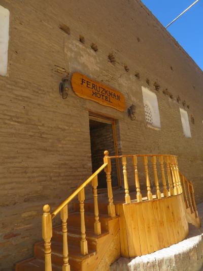 ツアーで利用しました。ヒヴァの町中にはバスは入れないので、ホテルには徒歩で移動です。ちょうど町の中央に位置しています。世界遺産であるヒヴァの町中で宿泊すると、朝や夜のライトアップの時、そぞろ歩きに最高です。ただ、ホテルの前身が神学校なので、シャワーのお湯が出なくなった部屋があったり、夜に断水して、トイレが流せなかったりしました。(トイレットペーパーはそもそも別の場所に捨てることになっているが)朝食は、味は美味ですが、種類が少なく、新たな料理が補充されませんでした。でも、中庭で食べる朝食は優雅なひと時でした。