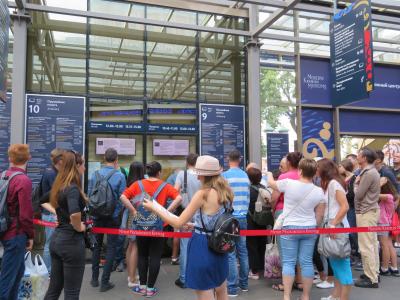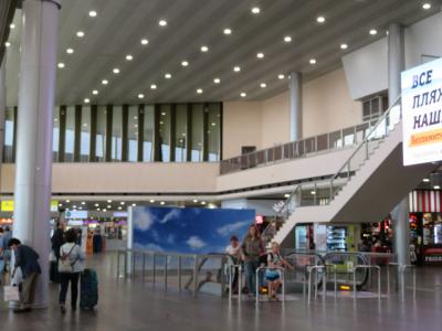 ツアー観光客が多い割に、全体的に椅子が少ないです。また、それ以前に、空港内部にはいるだけでも荷物の検査があり、その後搭乗券をもらうカウンターに行くのですが、そこもスタッフが少なく、とにかく90分以上並びました。搭乗券をもらったら、もう外には出られないシステムになっており、その後出国手続きと続きます。空港内は値札がユーロで書かれているので、注意しましょう。思わぬ高額の買い物をしてしまう可能性があります。また、ルーブルの換金も、空港内で必ずしておきましょう。