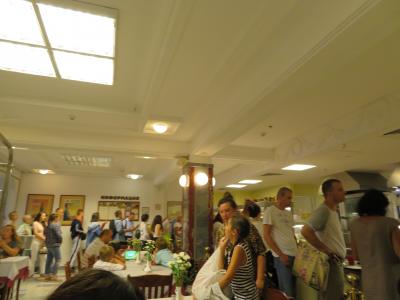 内部の撮影はできません。たくさんの観光客と、ロシアの学生ツアーが見学に来ていました。内部は荘厳な雰囲気で、一面の壁画や天井部分などの絵画もとても素晴らしかったです。チケット売り場が入場の向かいにある小さな売店です。ツアー客はそのまま入場してしまうので、間違えてしまわないように注意しましょう。