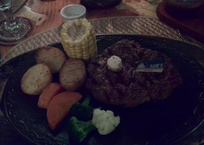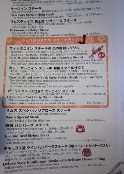 典型的なアメリカ風ステーキレストランです。子供から大人まで楽しむことが出来ます。他の方々を見ていると、飲み物はとても大きかったです。セットだけで十分お腹いっぱいになります。サムズ スペシャル リブロースステーキは安価でオススメです。夕食時は混むので予約する方がいいでしょう。