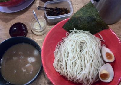 お酒も飲めるつけ麺屋です。元の値段が麺を2玉使用しているものもあり、お腹いっぱいになりました。途中で薬味を入れて味を少し変えたり出来ますし、つけダレにお出汁を入れてスープのようにして頂くことも出来ます。地元の人が楽しむお店でした。フリーWi-Fiがあります。