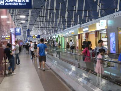 乗り継ぎで利用をしました。意外とターミナル1つ1つは狭く、店も同じような土産品を販売している様子でした。場所によってはWi-Fiのキオスクが見つけにくく、フリーWi-Fiを使うことができません。また、椅子が少なく、団体旅行の多い中国人の利用が多いこの空港では、手荷物検査などでも時間がかかります。国際乗り継ぎは不思議な通路を使います。足元の矢印に沿って進みましょう。中国入国には、外国人は指紋認証が開始されたそうです。