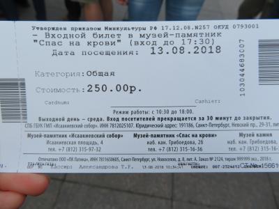 入場料は250ルーブルです。開場30分前から並び、入場しました。団体ツアーならもっと効率良く見学できるかもしれません。内部の撮影も、フラッシュや三脚を使用しなければ可能でした。あいにく一部改修中でしたが、とても美しく、見学する価値は十分です。運河沿いに出店も並びます。