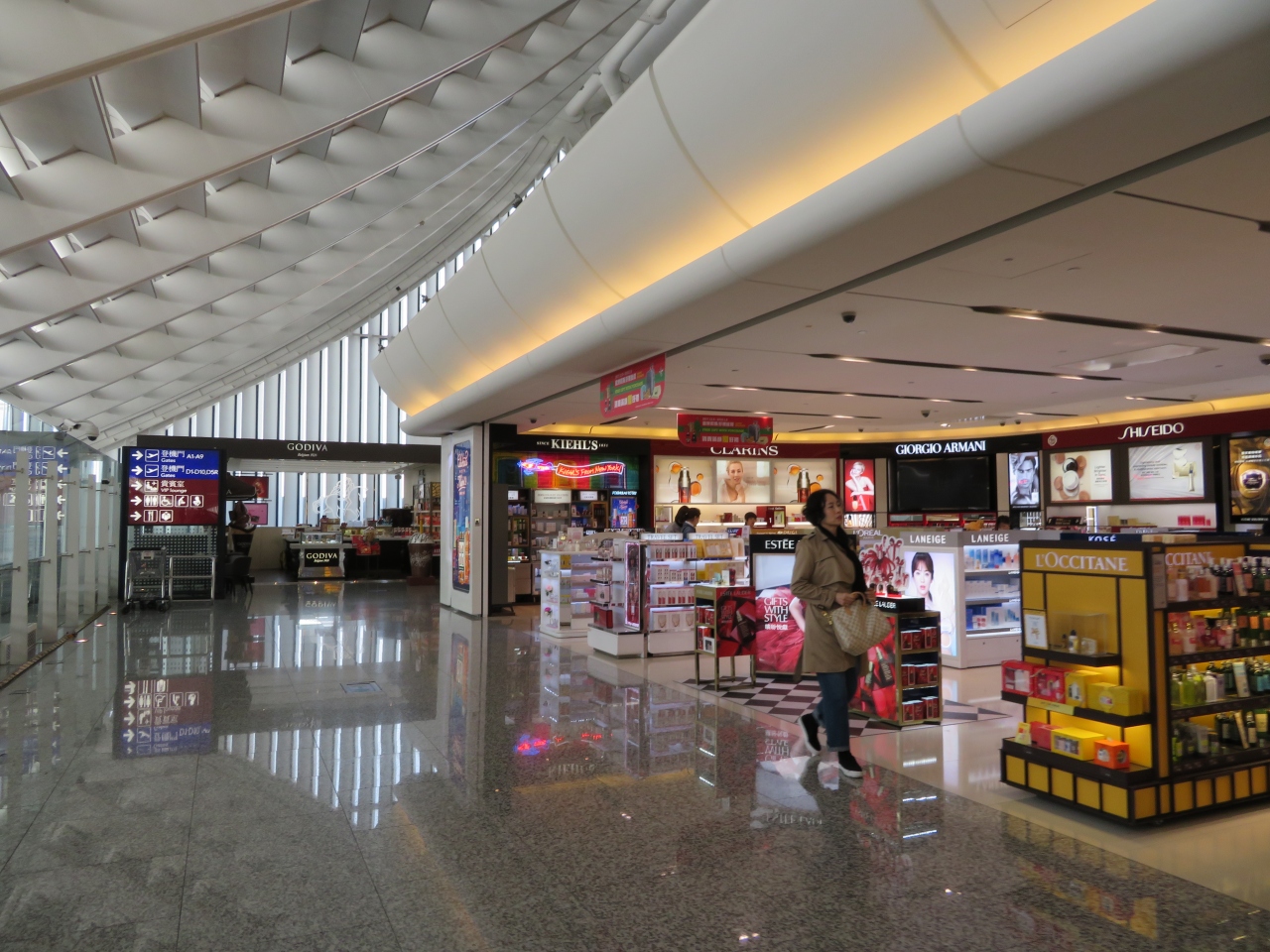 第1ターミナルを利用しました。搭乗手続きの際、預ける荷物をX線検査がきちんと済んだか、スクリーンで確認してから出国手続きをしなくてはいけません。出国手続きの後は、免税店がたくさんありますが、LCC利用のため、食品を販売しているところや食事ができる店を探しましたが、あまりありませんでした。空港に来る前に、コンビニなどで購入しておくといいと思います。各搭乗口に給湯設備があるので、水筒があればいいと思います。無料wifi接続環境は抜群に良いです!