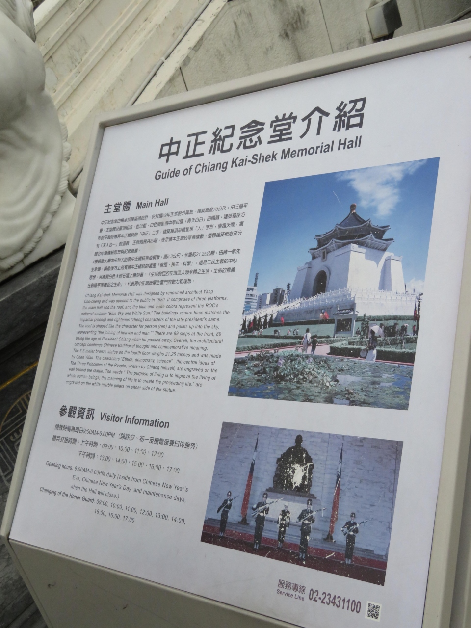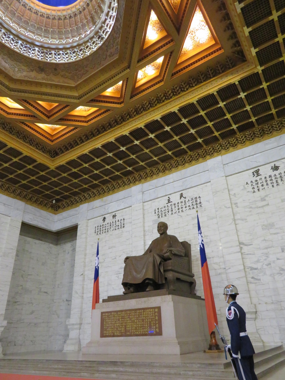 記念堂の4階に巨大な蒋介石の彫像があります。思っていた以上に大きかったです。公園が広いので、散策やジョギングにはぴったり。門の近くには足裏のツボを刺激するための場所もありました。歩き疲れた時に、トイレ休憩がてらにいいかもしれません。