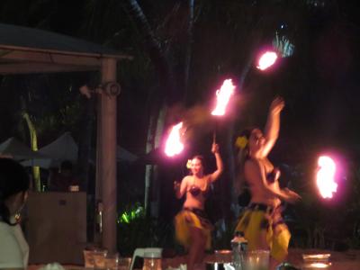 ツアーに含まれていました。肉類は1人分の量がきちんと渡されます。牛肉・鶏肉・魚介類に野菜と、かなり量が多いです。その上、バイキング料理の追加されます。ショーは座る場所次第ですが、初めてファイアーショーを見る人にとっては迫力もあり、楽しいと思います。(ハワイのポリネシアンカルチャーセンターには劣ります・・・)