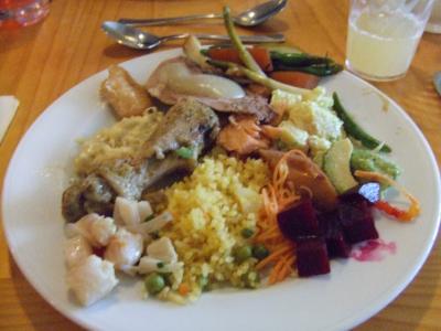 コカ茶がサービスでついてきましたが、バイキングだったので、英語の表示が読めれば、かなり便利です。鶏肉、アルパカ肉、牛肉、ラム肉とさまざまで、ペルーの料理を味わうことができます。広場から見える、ガラスの出窓のある店はココだけですが、入口は見つけにくいかもしれません。