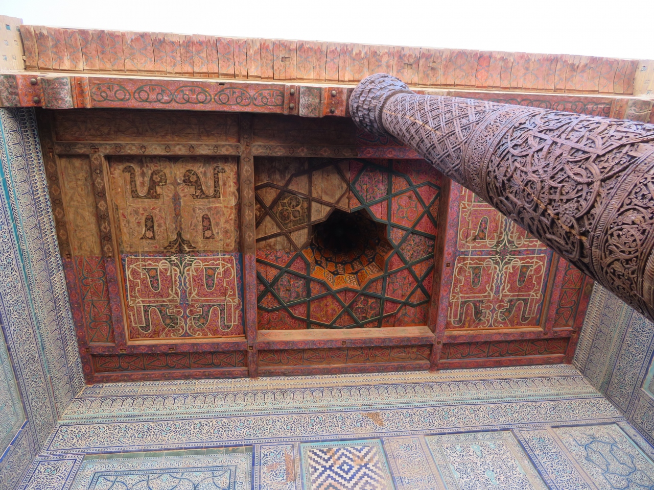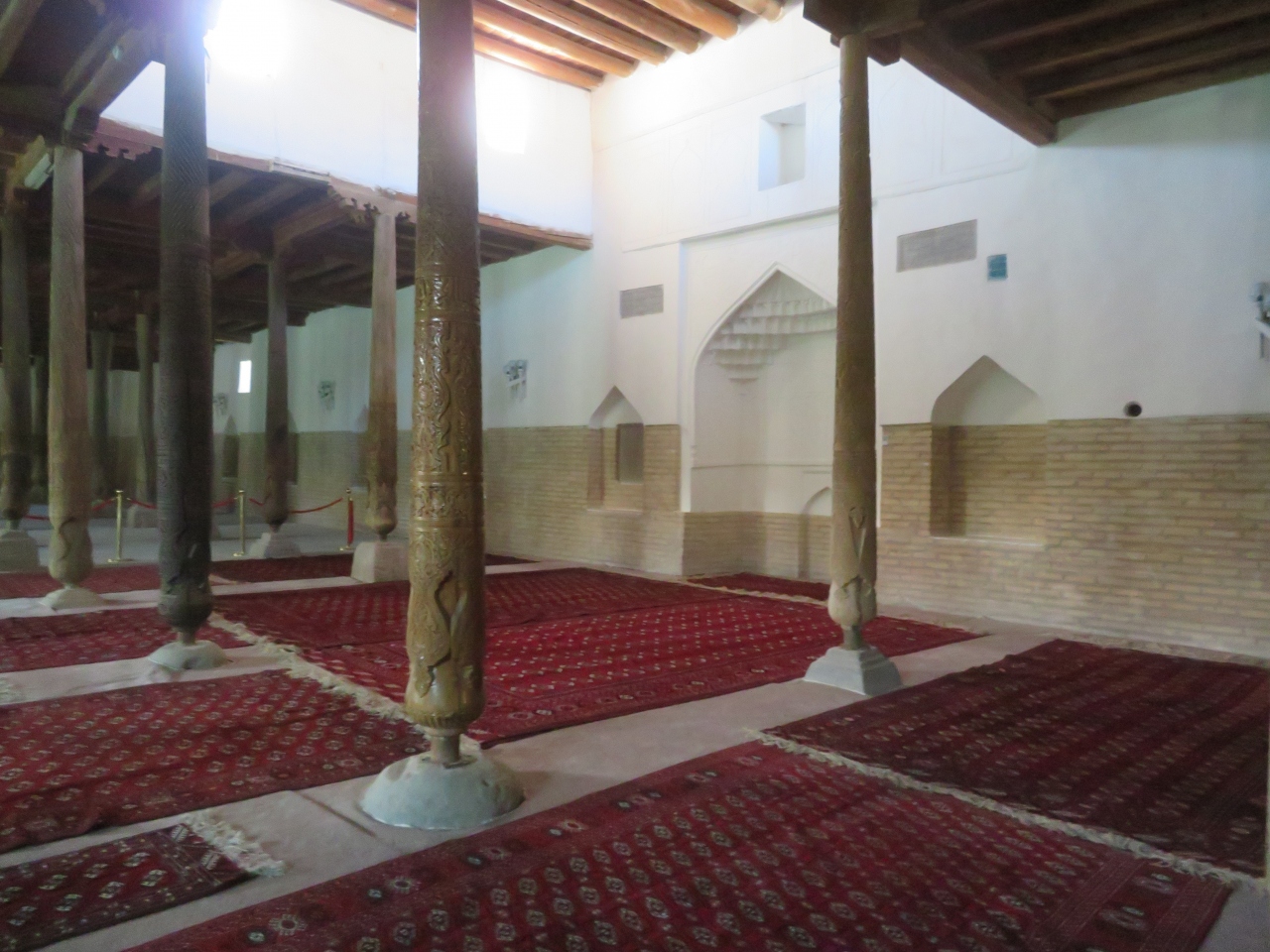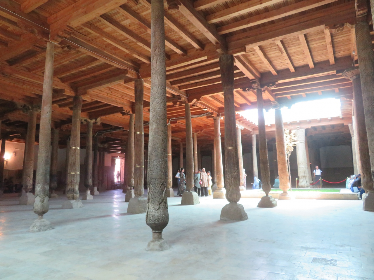 柱がたくさんあり、それぞれの木の柱を作った人が別ということで、同じ柱は一本もないそうです。そこはかとなく、アルハンブラ宮殿を思わせます。一番古い柱は保護されています。意外と広く、涼しく感じました。トイレはありません。モスクはイチャンカラの普通券で見学できるのですが、ミナレットは別料金が必要す。