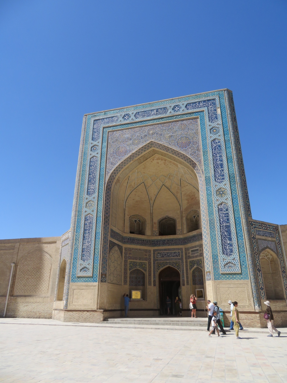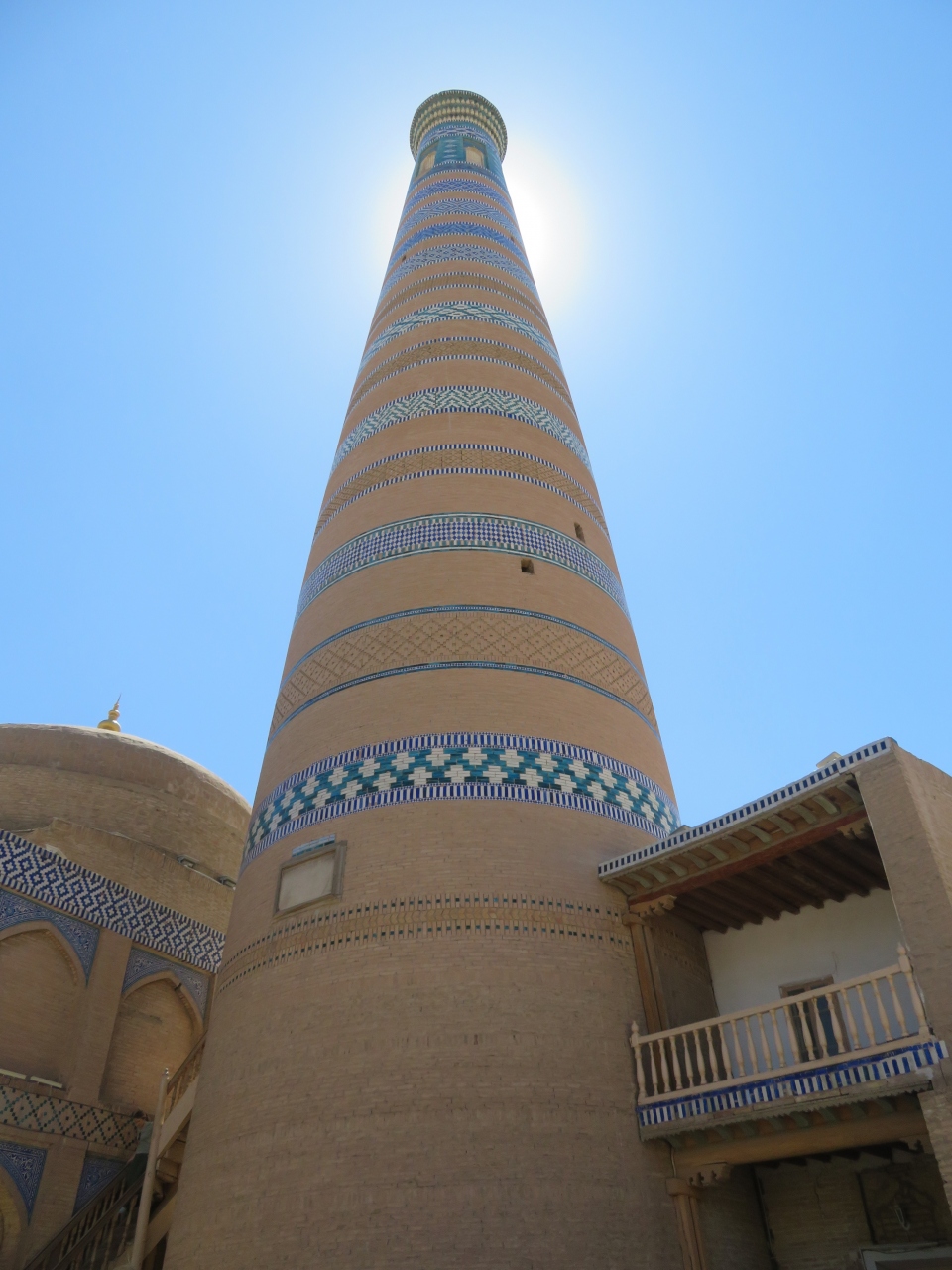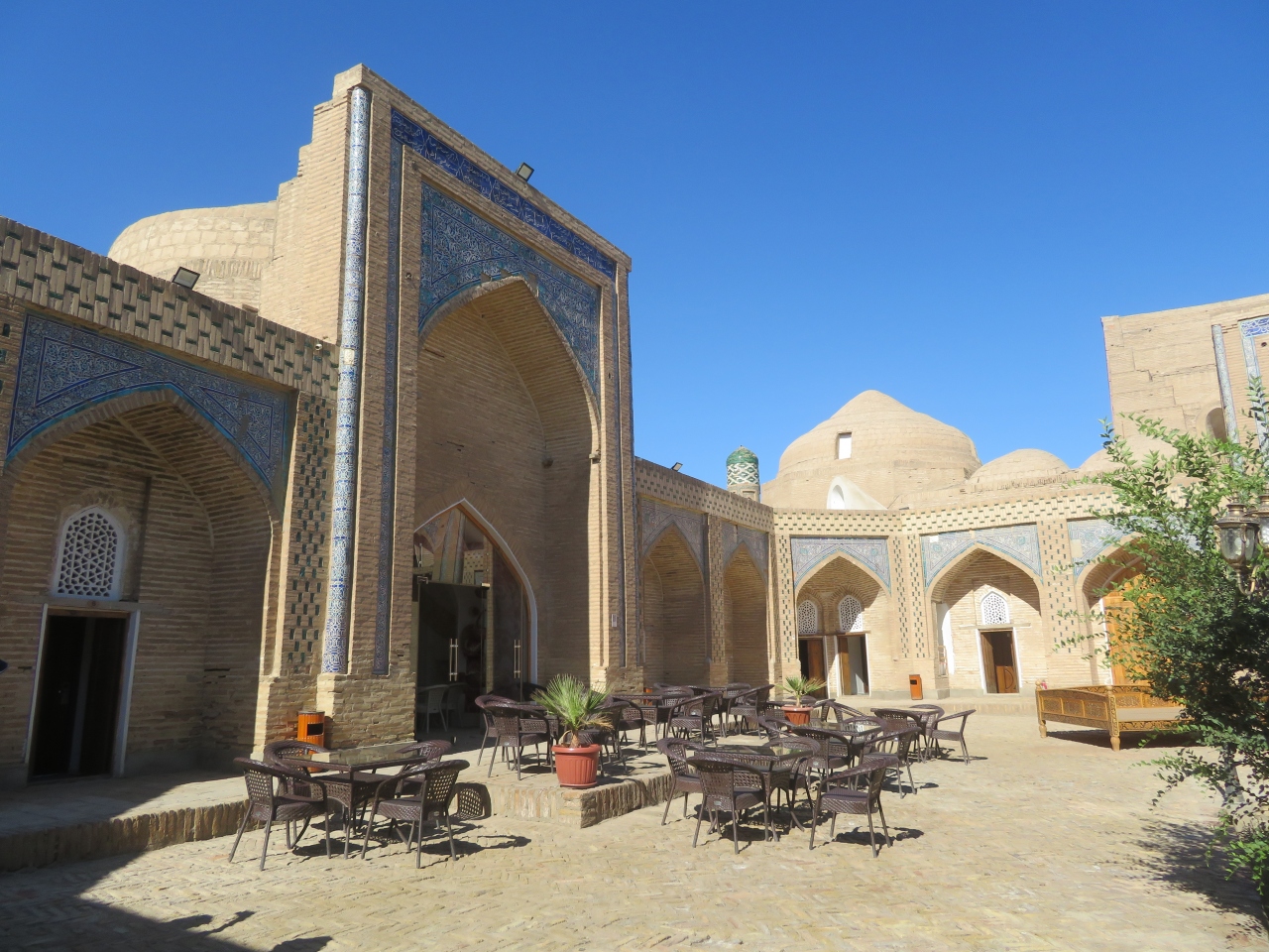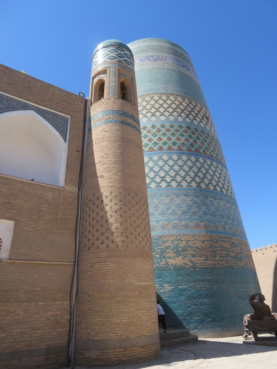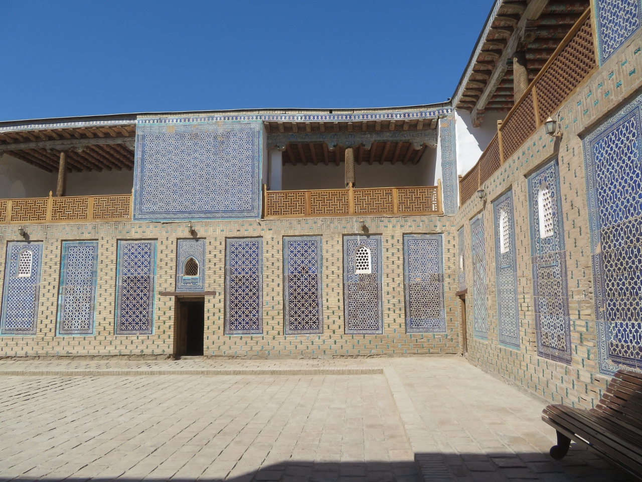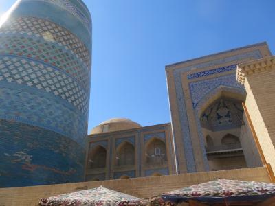 イチャンカラの普通券で見学できますが、別に入場しなくても、外観の写真を撮るだけで満足できる美しさです。ミナレットはヒヴァで一番高く、追加料金を支払え場登ることができますが、階段は急で、幅も狭く、手すりがなく、大変です。クフナ・アルクの見張り台の方が低くても安全に景色を楽しめました。
