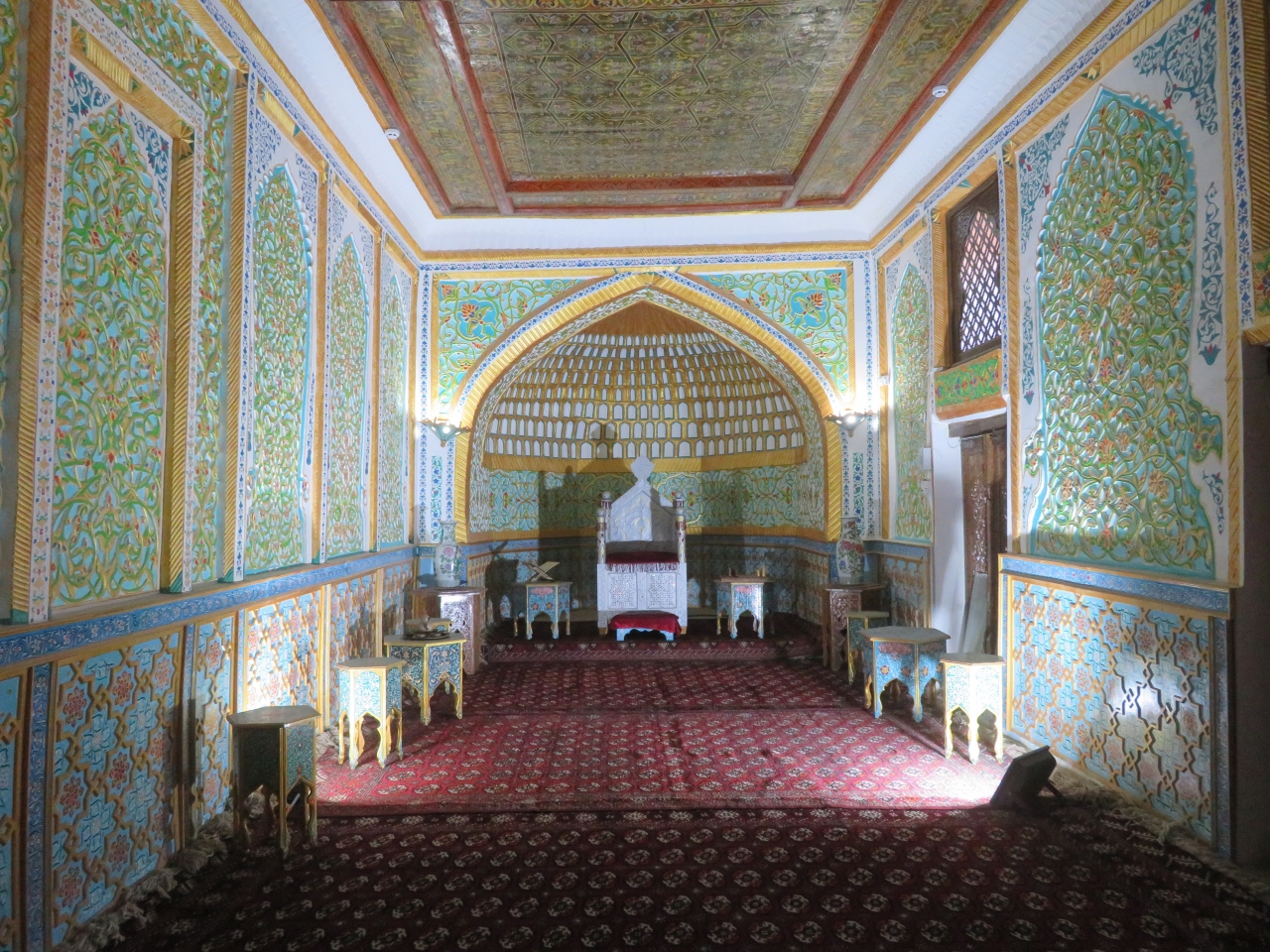 町の中心部に位置しています。モンゴルの来襲時に地面に埋もれていたということで、被害を逃れたそうです。そのため、外側にタイルなどによる装飾はありません。一段低いところにあります。内部はじゅうたんの博物館になっています。それぞれの地域で柄に特色が出るそうです。ウールで作ったものや、赤色系統のじゅうたんが多いように感じました。