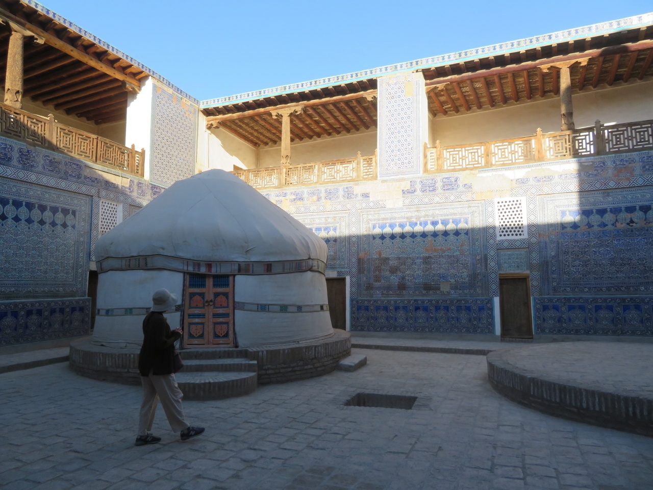 カラーン・モスクと橋で繋がっています。ブハラで一番高いミナレットだそうで、町のどこからでも見えるとのことでした。以前箱のミナレットに上がることができたそうですが、今は上がれないそうです。地震にも、チンギスハンにも破壊されなかったそうです。