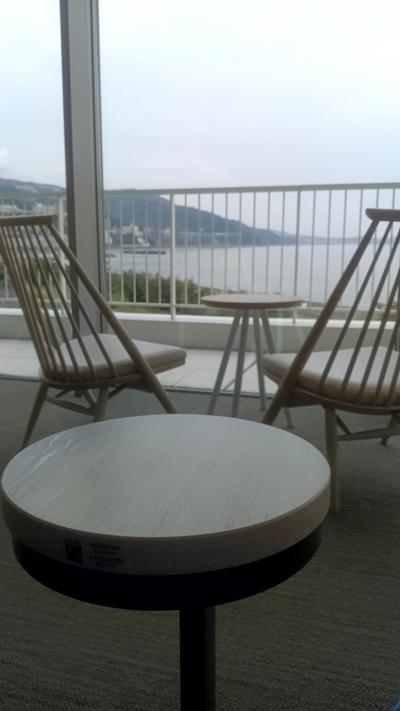 上層フロア利用の方のみ、オーシャンビューのルームにて、ドリンクと御菓子がいただけるようになっていました。