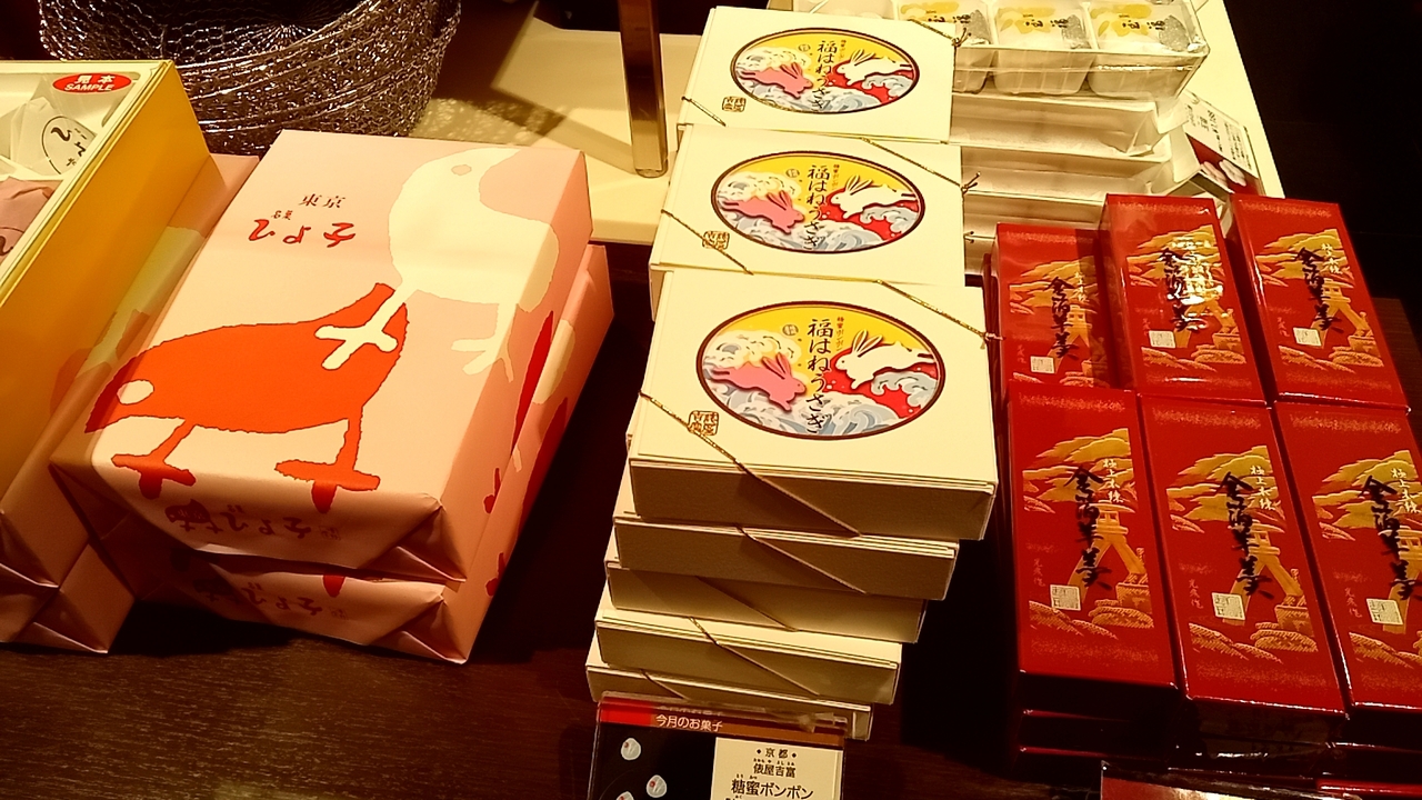日本全国の御菓子を購入出来る「菓遊庵」では、今年の干支である「うさぎ」に因んだ新春の御菓子が販売されていました。- 旅行時期
