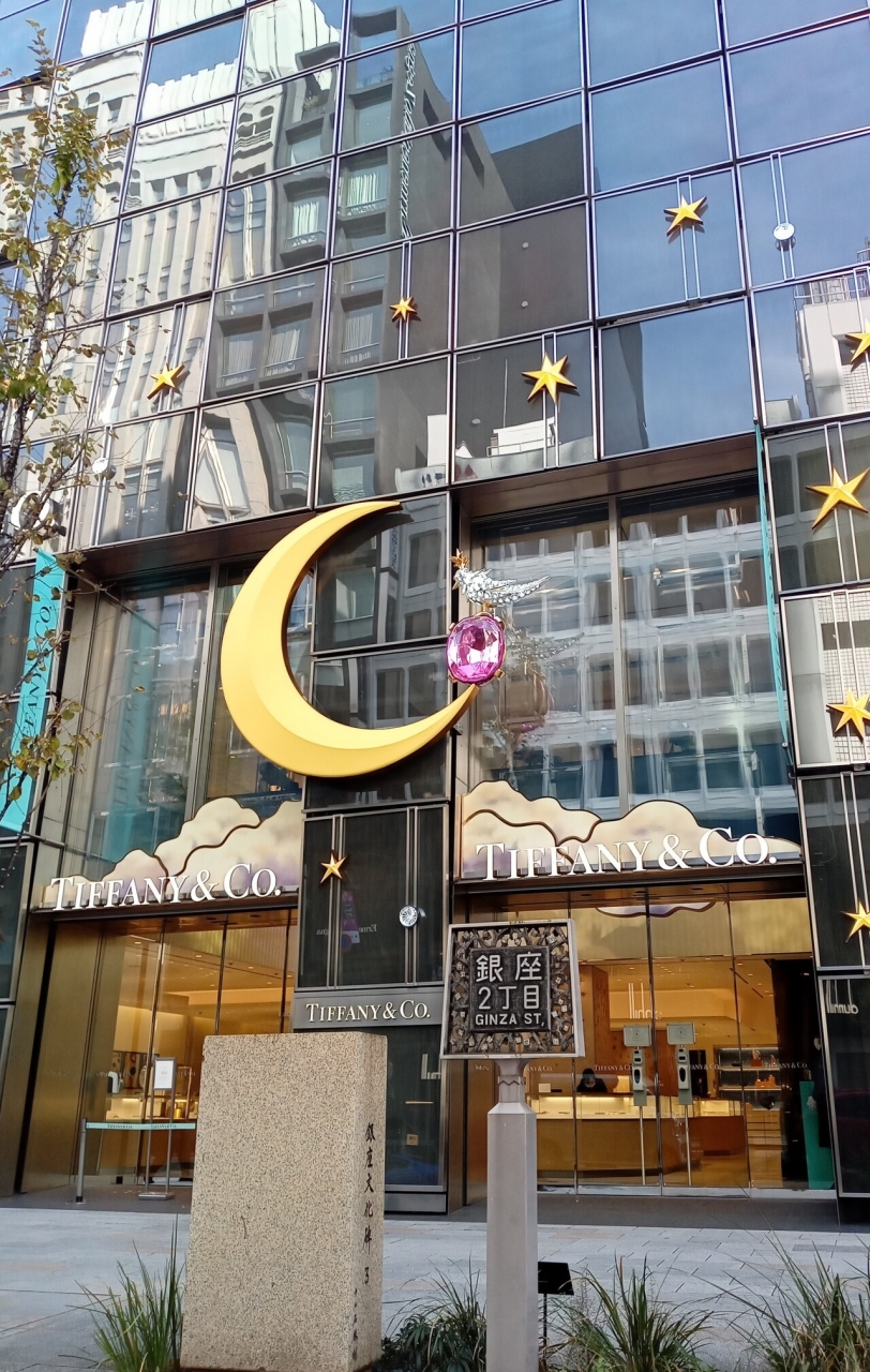 東京・銀座にある『ティファニー (銀座本店)』の店舗の壁面に『クリスマスイルミネーション』が施されています。日中でもとてもお洒落でストーリー性のある素敵なデイスプレイとなっています。夜はさらに素敵です。