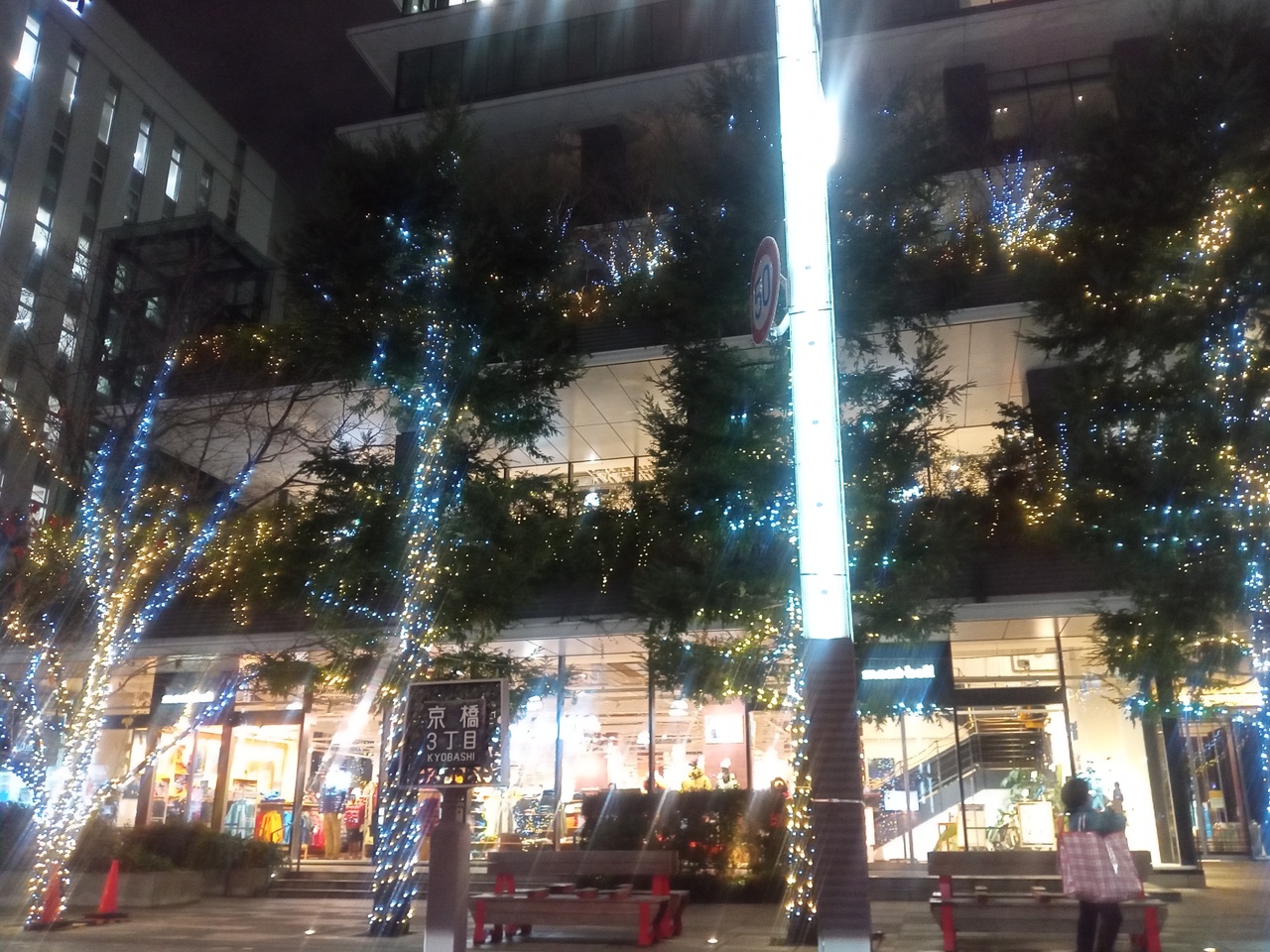 東京・京橋にある『東京スクエアガーデン』も、クリスマスシーズンを迎え、クリスマスイルミネーションが始まっています。シンプルなイルミネーションですが、とても綺麗なイルミネーションで、時折立ち止まって写真に収めていらっしゃる方も多いです。
