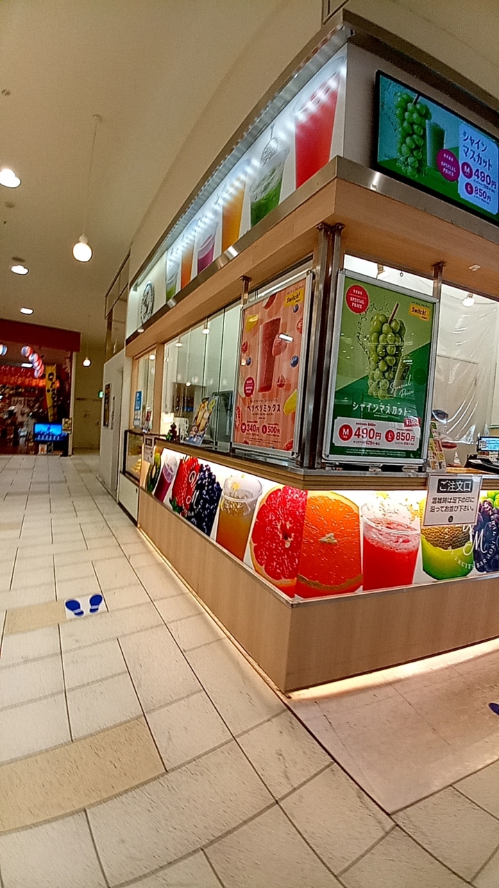 埼玉県・越谷の「イオンレイクタウン・kaze」の1Fに出店している『V2&M by Fruits Bar AOKI レイクタウンkaze店』では、フレッシュジュースが販売されていて、旬のシャインマスカットを使用した「シャインマスカットジュース」も販売されています。ちょっと高級感あるフレッシュジュースです。
