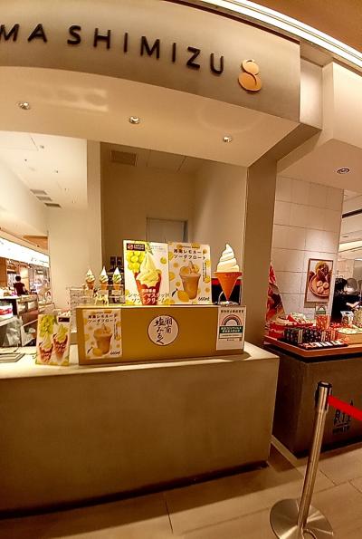 東京・銀座の「GINZA SIX」に出店している『クゲヌマ・シミズ』の「湘南塩みるく ソフトクリーム」。季節限定メニュー『シャインマスカットソフトクリーム』が販売されていました。イートインスペースはありませんが、まだまだ暑い日が続いているので、ひとやすみスイーツに良いです。