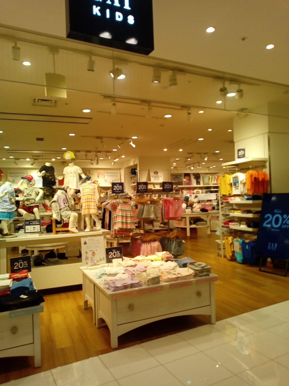 東京・お台場の「アクアシティお台場」に出店している『Gapストア (アクアシティお台場店)』では、SALEが開催されていて、ベビーファッションなどを購入されていらっしゃるお客様がとても多く御来店されていらっしゃいました。ファミリーで楽しめるファッションが人気です。