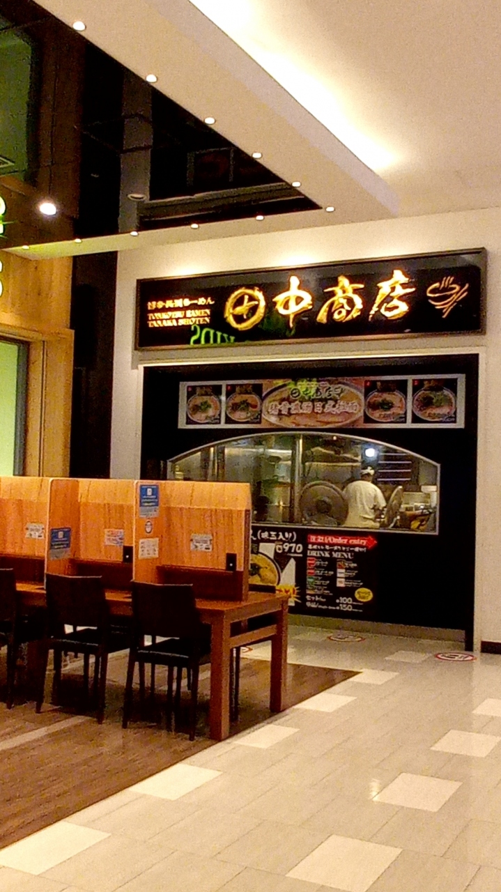 東京・お台場の「ダイバーシティ東京プラザ」のフードコート入口すぐの場所に『田中商店 ダイバーシティ東京プラザ店』が出店しています。猛暑のなか、熱い豚骨ラーメンを調理されていらっしゃり、とても尋常ではない状態が伺えます。
